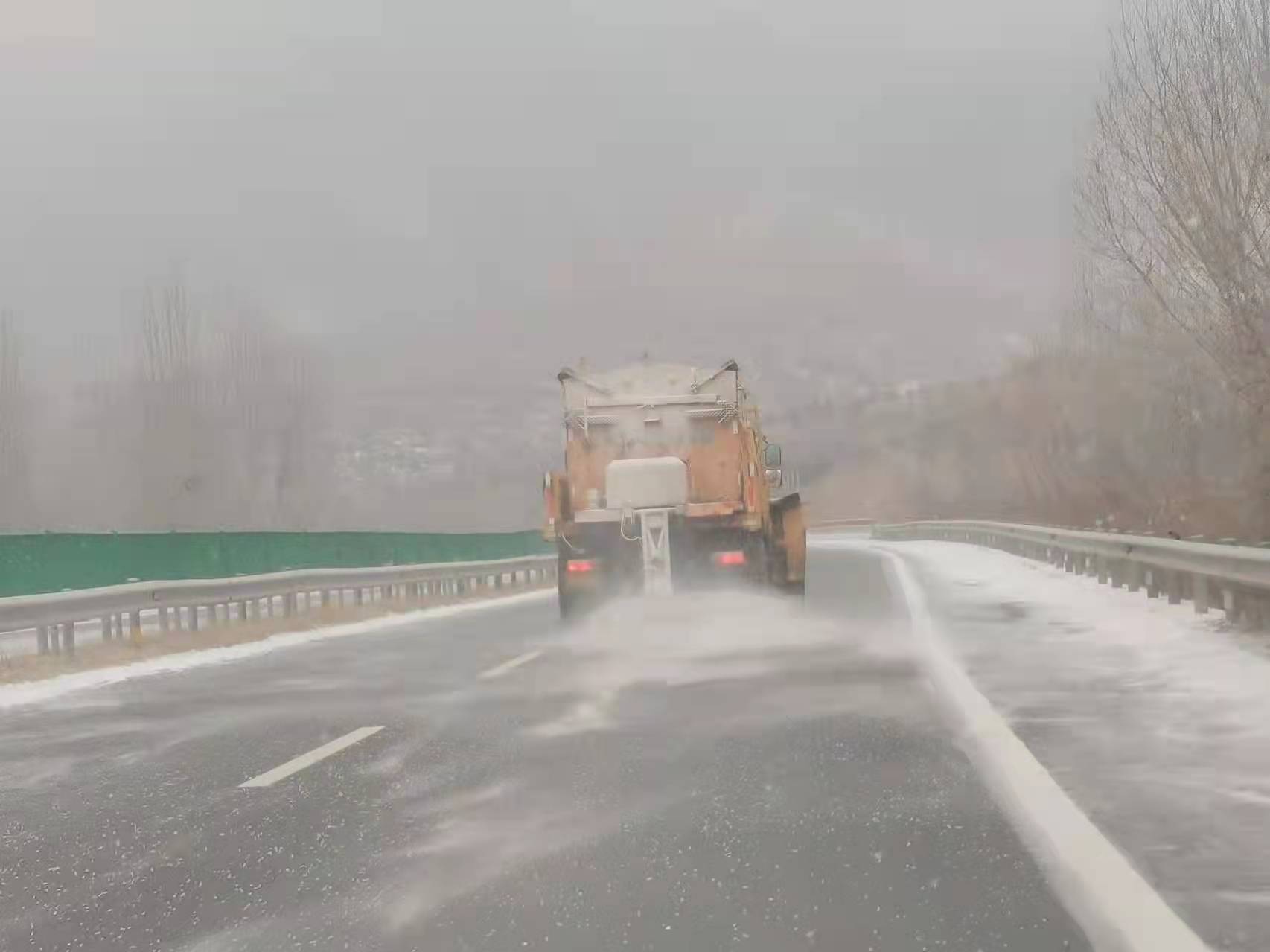 一方面安排巡查人員上路查看路面雪情,另一方面調(diào)動養(yǎng)護人員、機械迅速到位,及時對積雪較厚的路段實施除雪車機械除雪,并用滾刷及時清掃,同時播撒融雪劑。目前京新、京藏、海張高速降雪路段路面見黑符合通行條件,降雪還在持續(xù),中心養(yǎng)護隊伍始終堅守在一線,保證高速公路的暢通。